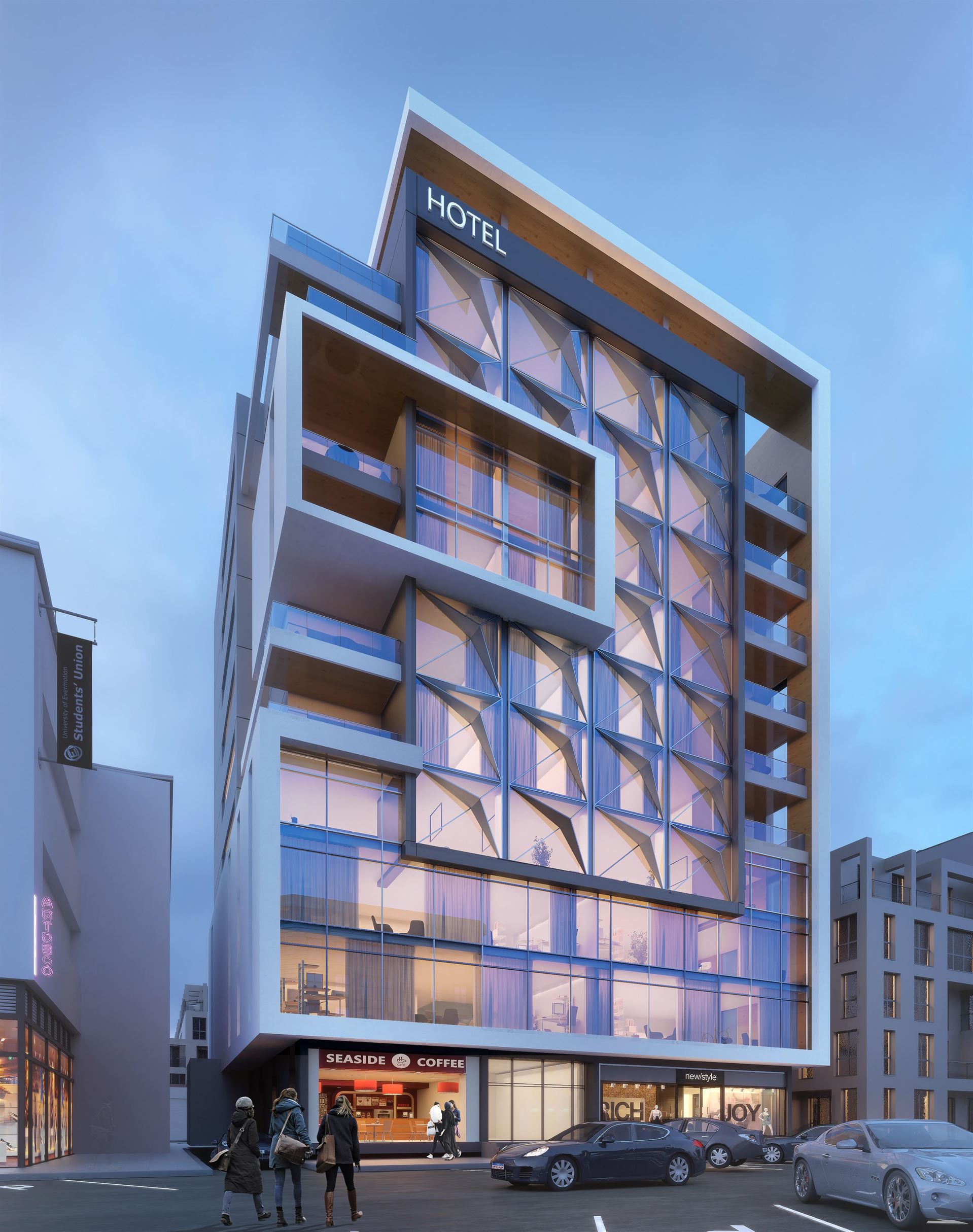 3 star hotel located in a prime location at the heart of Alkhoudh Souq. The project consists of 2 basements, 3 floors of retail and office spaces and 7 floors for hotel use. The building design makes it stand up with its unique modern facade with a huge structural glazing and quality of the finishing materials.
