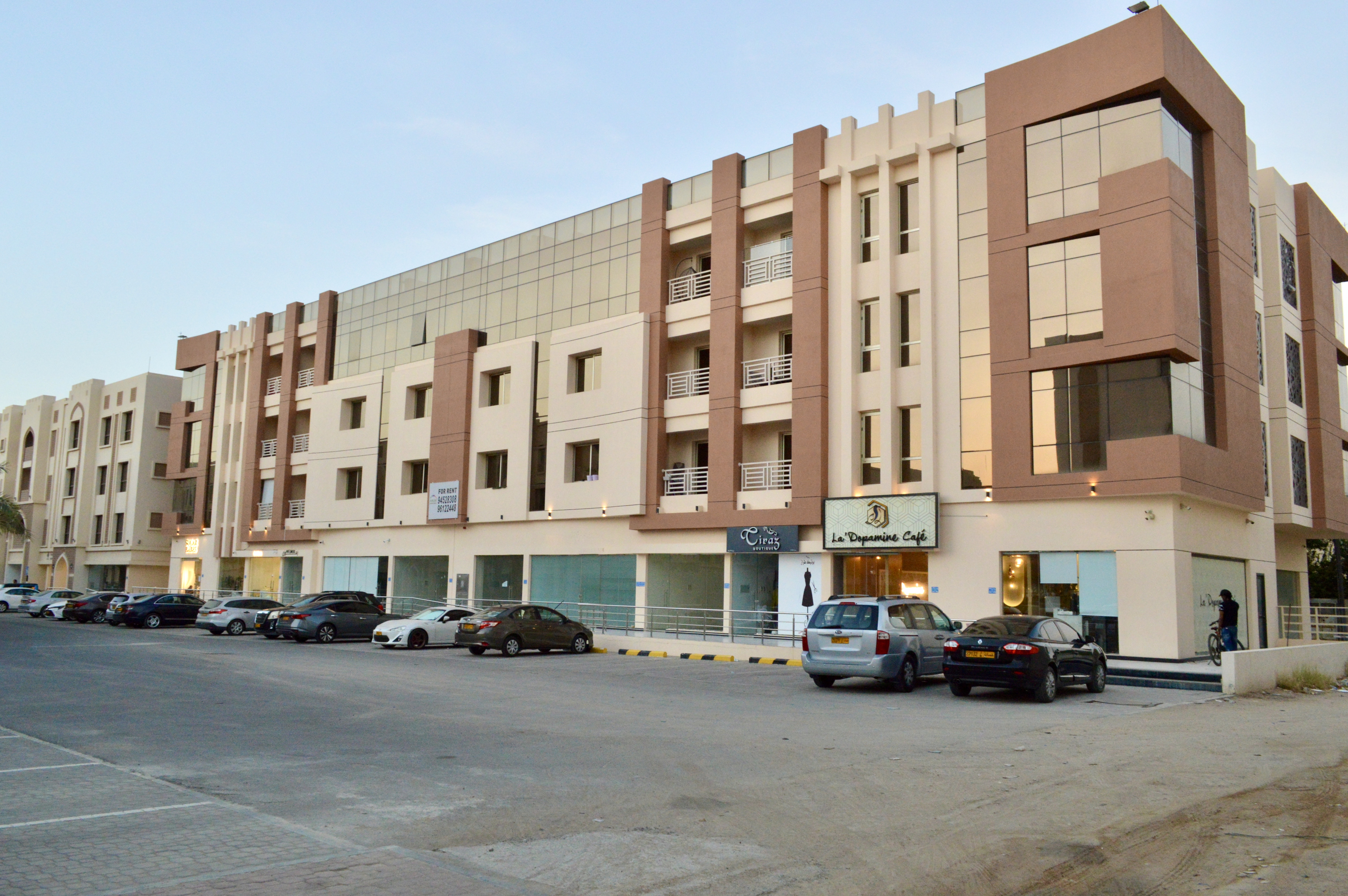 Located in a Mawaleh, As Seeb, Shurofat building is one of the unique buildings in its area. Spread over 5,318 Square meters of built up area, this commercial & residential building has been given a modern facades. It consist of Ground commercial spaces plus 4 residential floors.