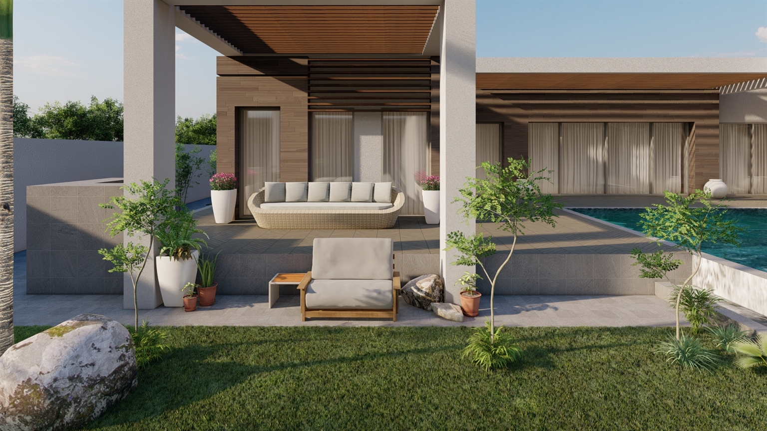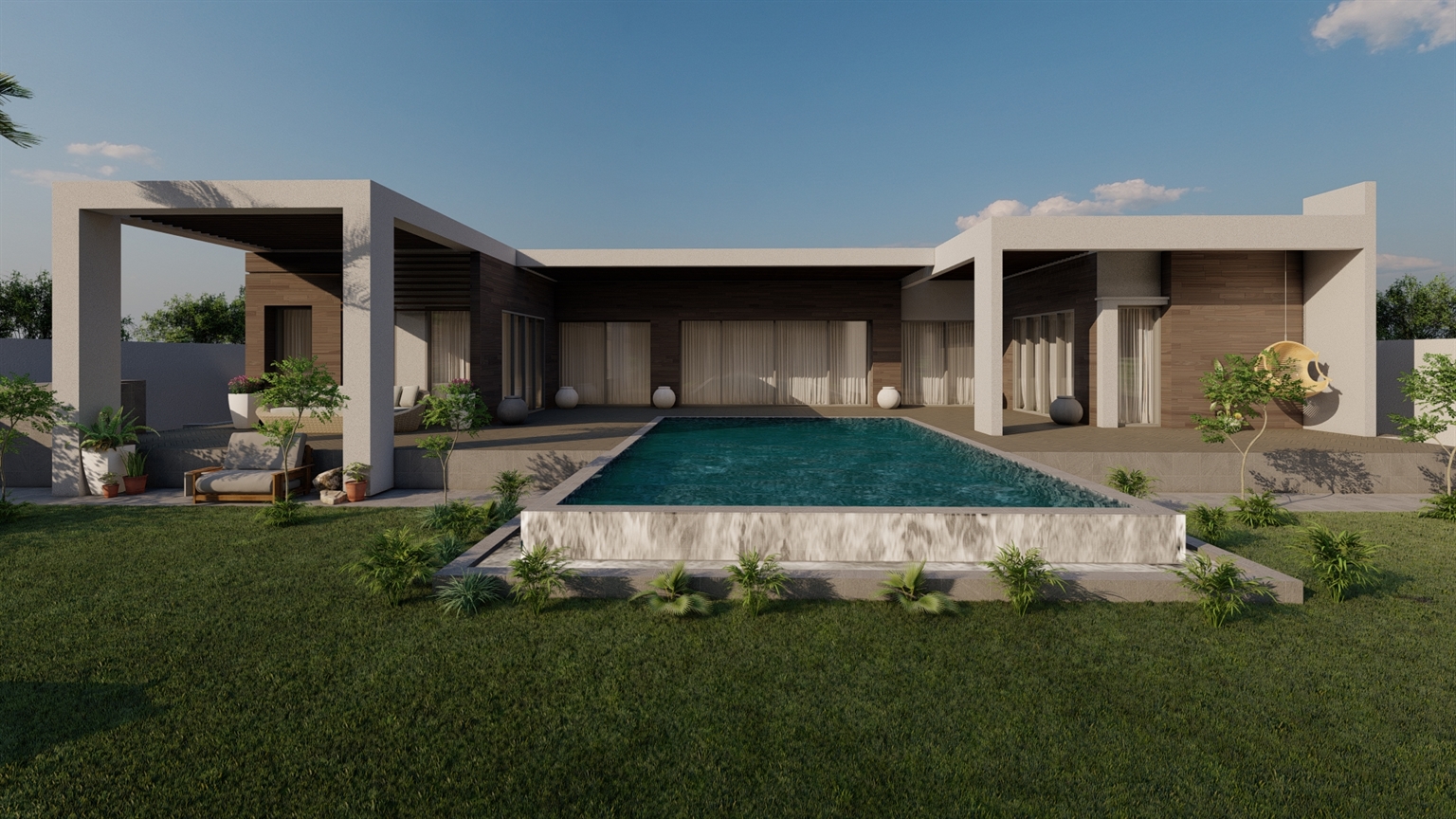 Welcome to this stunning contemporary vacation villa that masterfully combines the warmth Arabian hospitality functions with the sleekness of contemporary architecture, offering a unique experience.
