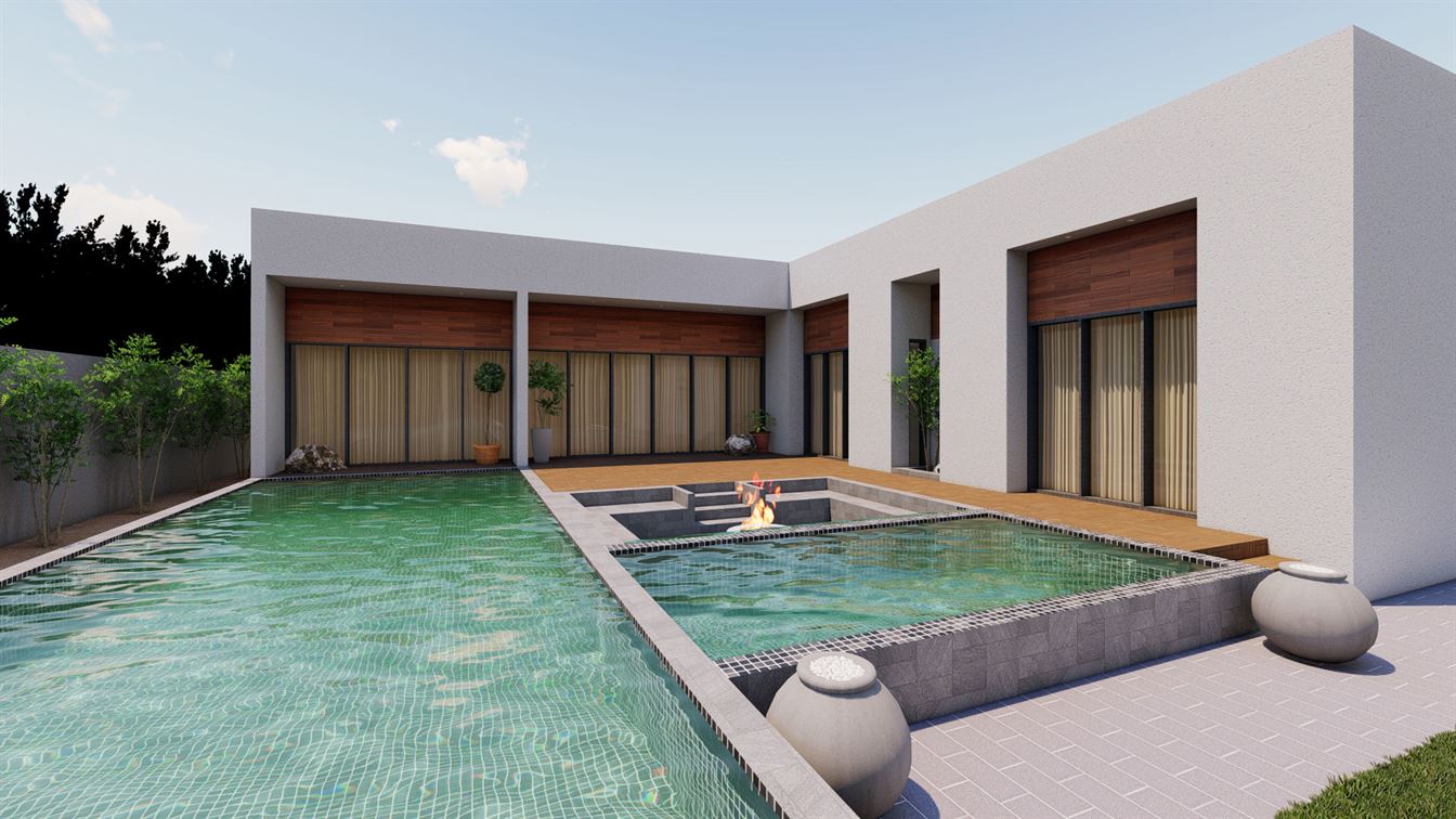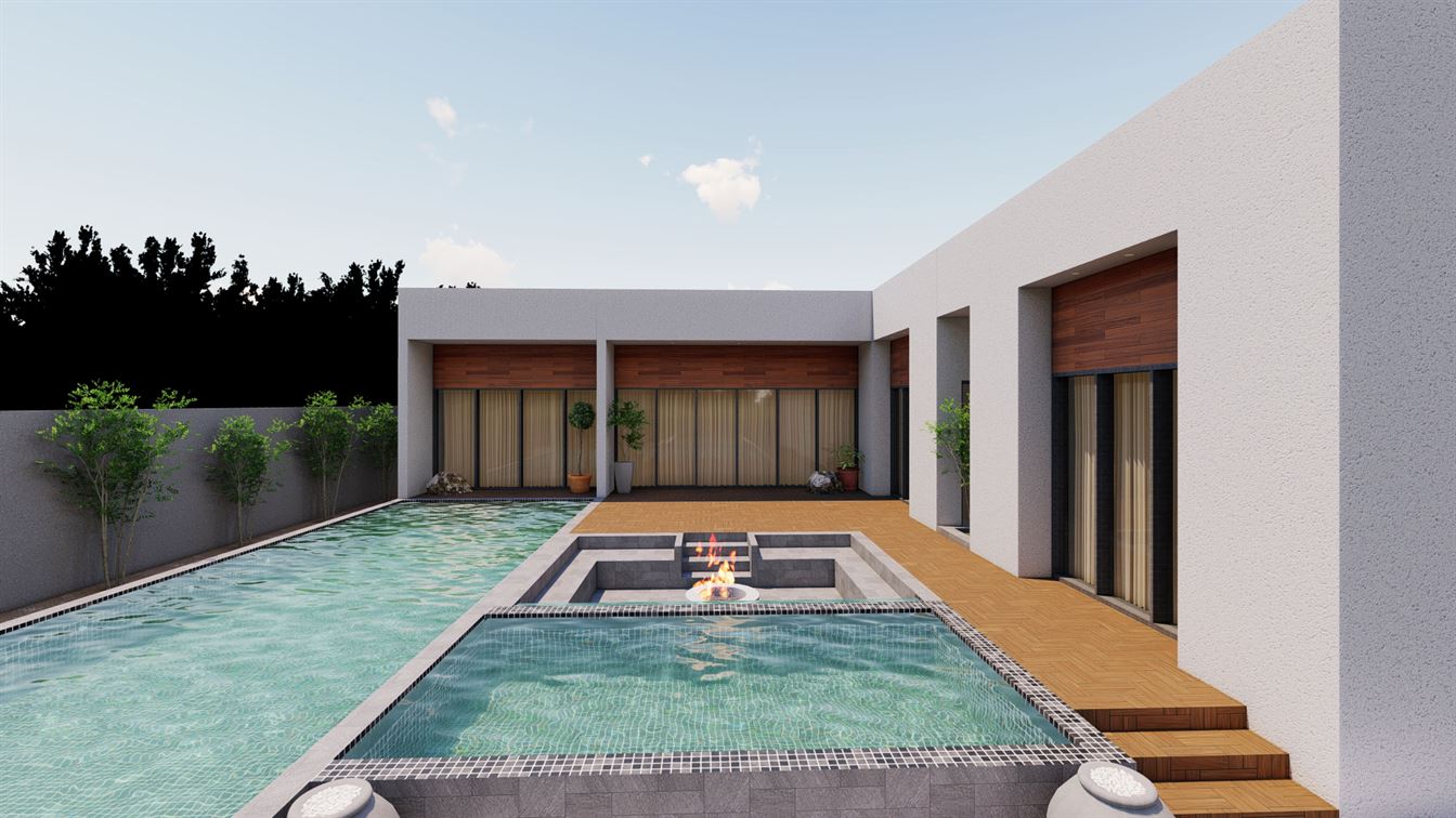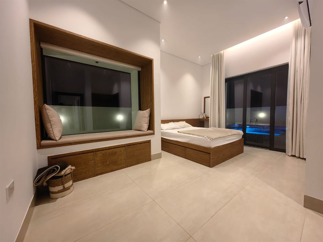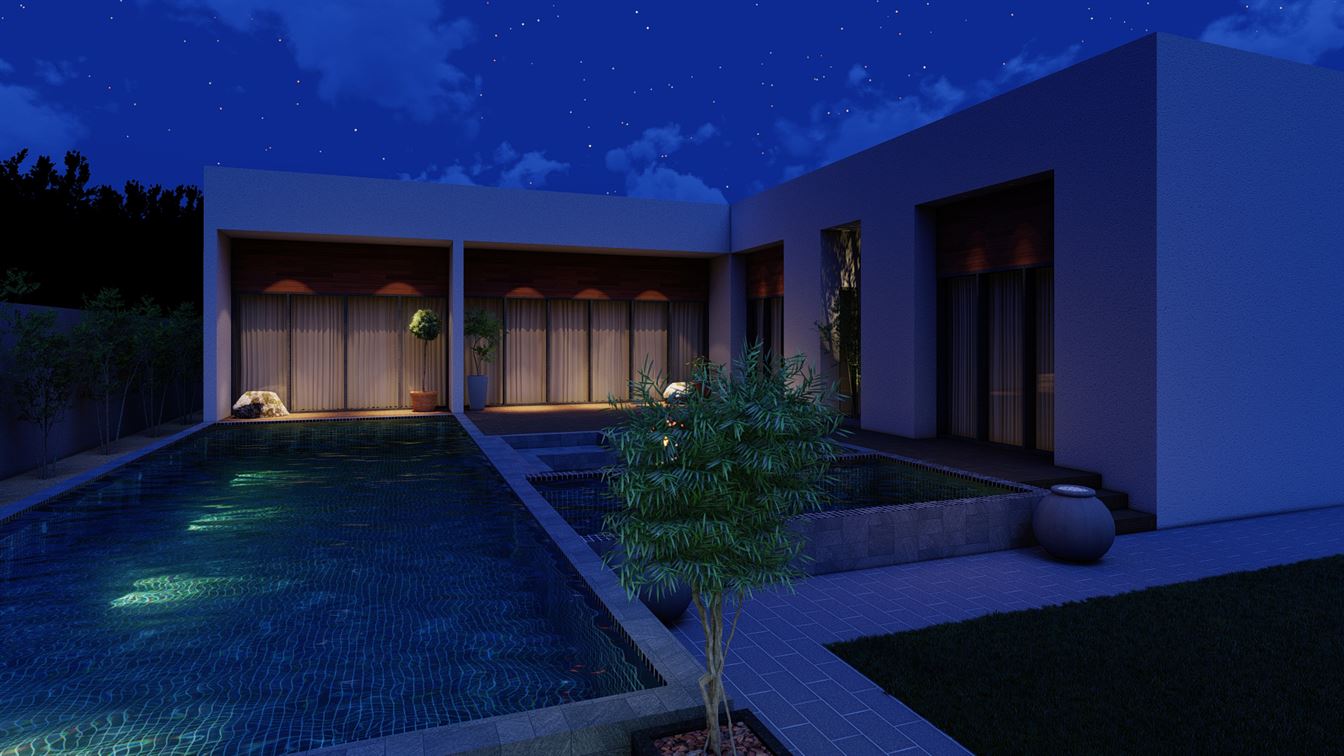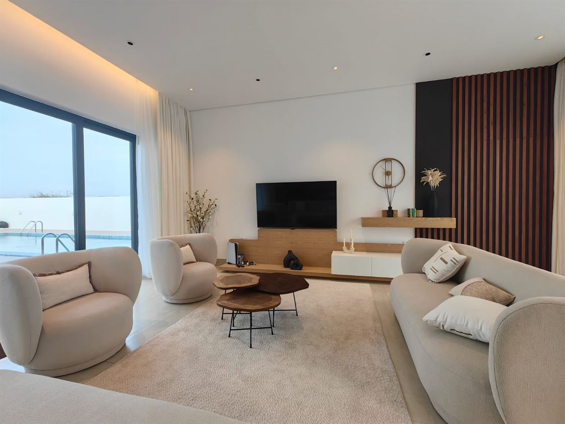 Designed to be the perfect getaway within a short distance from Muscat city center. The contemporary design of the villa is simple and elegant. The large overflow pool and its surrounding external areas are the heart of this project.