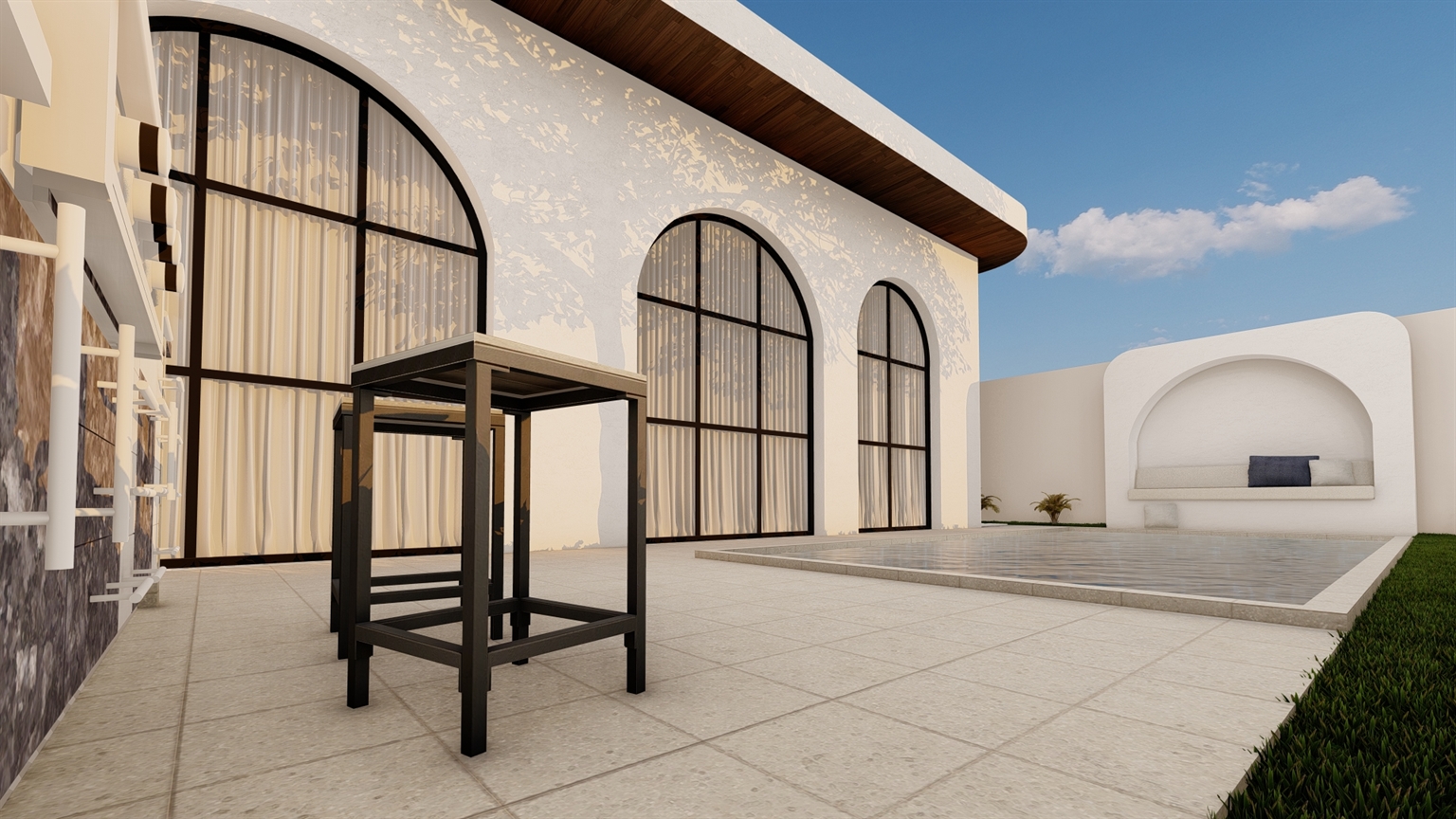 Al Haram Chalet is a luxury private chalet that was designed considering the maximum level of comfort and privacy. The chalet was designed with Mediterranean style facade and interiors which give the guests a rich and unforgettable experience.